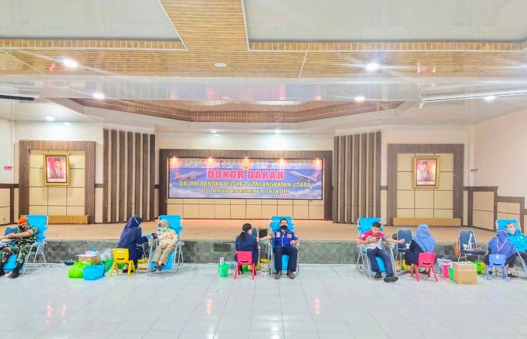 Komandan Lanud Roesmin Nurjadin Marsma TNI Ronny Irianto Moningka, S.T.,M.M., mengatakan, dalam rangka menindak lanjuti surat dari Ketua PMI Pusat kepada Kasau tentang bantuan pengerahan donor darah, dan bersempena dengan Hut TNI AU ke-74, maka sebagai insan TNI AU yang profesional, militan dan inovatif tentunya harus mampu berkontribusi positif dalam kepentingan bersama, terutama membantu PMI agar tersedianya stok darah yang memadai, sewaktu-waktu sangat dibutuhkan bisa didistribusikan kepada masyarakat yang membutuhkan.