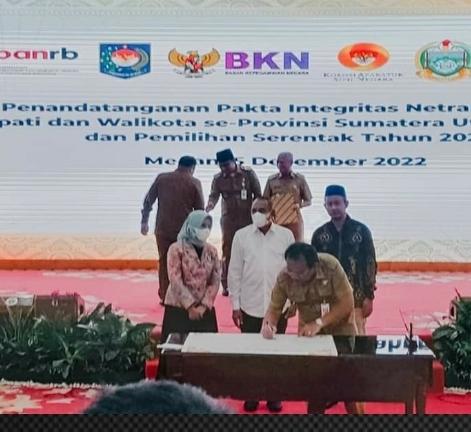 Demikian disampaikan Gubsu, Edy Rahmayadi pada acara penandatanganan Pakta Integritas Netralitas ASN oleh Bupati dan Walikota se-Sumut pada pemilu dan pemilihan serentak tahun 2024 di Aula Tengku Rizal Nurdin, Rumah Dinas Gubernur, Medan, Senin (5/12/2022).
