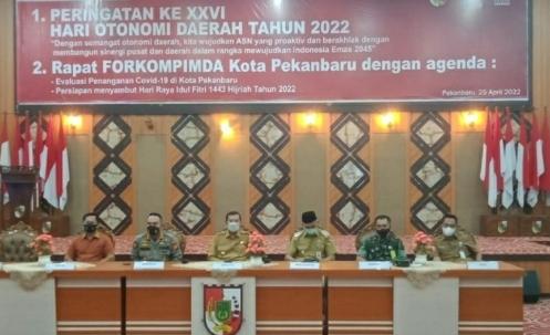Pekanbaru - Kepala Dinas Personel Lanud Roesmin Nurjadin Kolonel Adm Fauzan Zuhdi selaku Forum Komunikasi Daerah (Forkopimda) Kota Pekanbaru hadiri kegiatan peringatan ke-XXVI Hari Otonomi Daerah Tahun 2022, yang dilaksanakan secara virtual, tempat Gedung Perkantoran Walikota Tenan Raya Pekanbaru, Selasa (26/4/22).