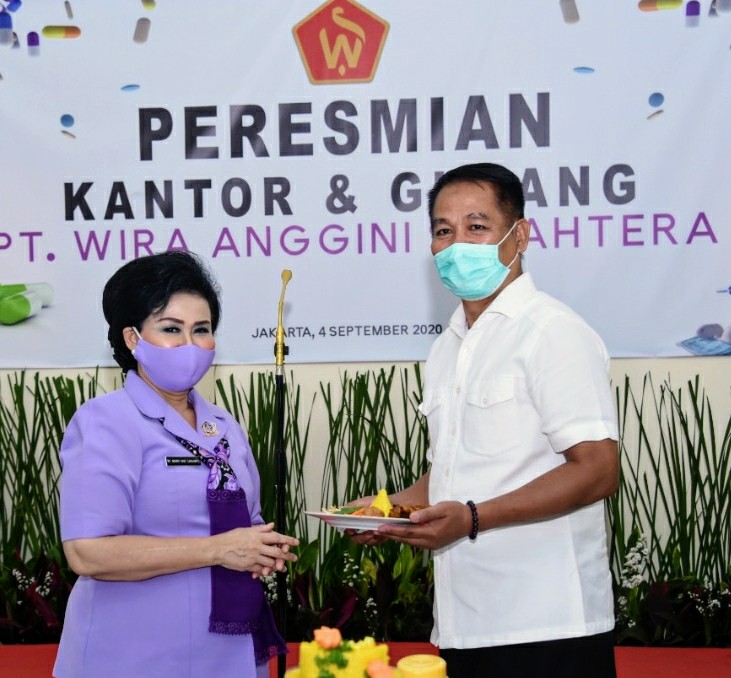 Jakarta - Ketua Umum (Ketum) Yayasan Tunas Muda Ikatan Kesejahteraan Keluarga TNI Pragati Wira Anggini (IKKT PWA) Ny. Nanny Hadi Tjahjanto meresmikan kantor dan gudang PT Wira Anggini Sejahtera (WAS), di Kantor PT WAS Halim Perdanakusuma, Jakarta Timur, Jumat (4/9/2020).