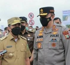 Kapolda Riau, M. Iqbal dan Gubernur Riau, Syamsuar saat menyampaikan keterangan pers terkait dibukanya sementara Jalan Tol Pekanbaru - Bangkinang. (Dok: Humas Polda Riau)