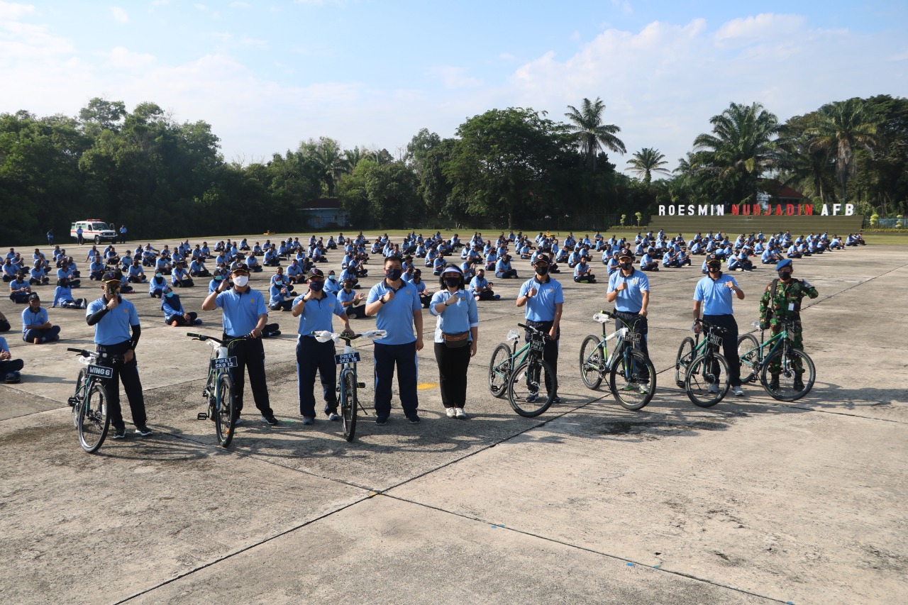 Olahraga bersama yang perdana digelar semenjak pandemi Covid-19, dan sekaligus memberikan support agar personel Lanud Rsn lebih giat bekerja dan berolah raga.